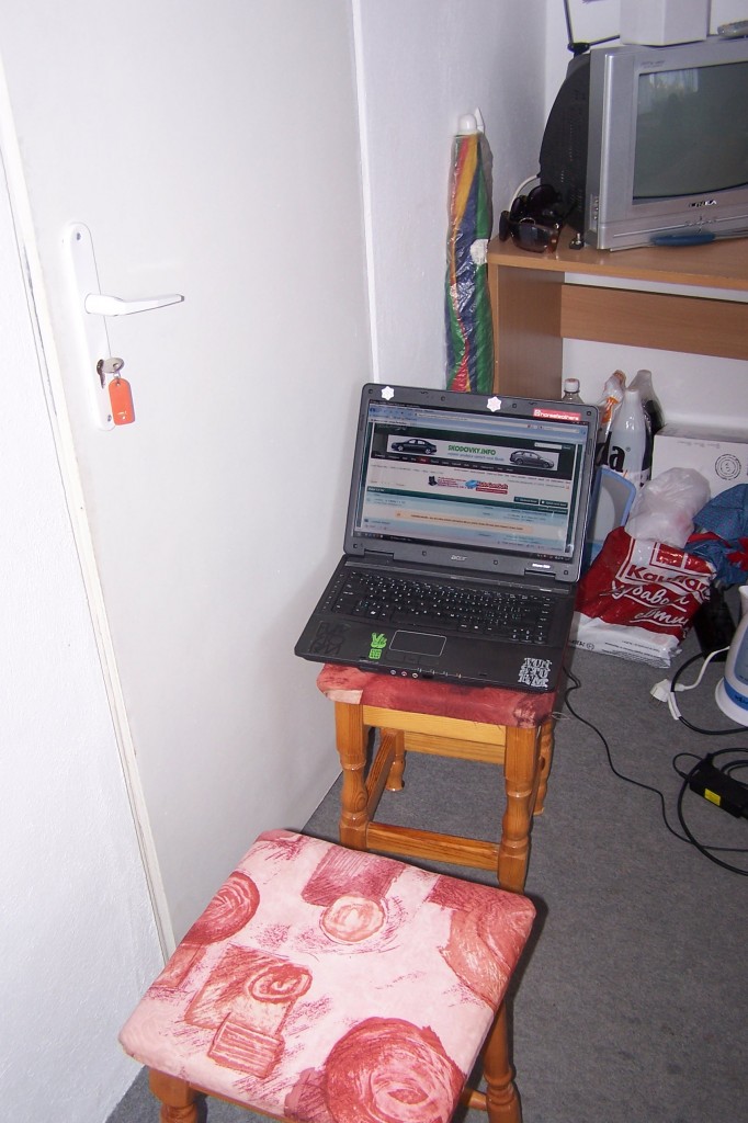 jinak tady máte fotku jak musím sedět jako vyhnanec u dveří s noťasem, abych měl alespoň jednodílkový signál na wifině od domácího a nemusel jak loni chodit dolů ven před obchod s apartmánovým domem