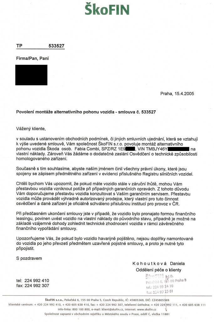 Srpen 16, 201015 r Ahoj, musíš požádat majitele vozidla, tedy leasingovku o souhlas s montáží. Škofin s tím nedělá problémy, stačí zavolat na tu jejich kontaktní linku, nahlásit číslo leasingové smlouvy a je to. Pokud máš dobrou platební morálku a nejsou s Tebou coby nájemcem problémy, svolení ti dají, jen uvedou, že přestavba bude provedena na tvoje náklady. Rovnou je požádej, ať ti zašlou na zapůjčení velký techničák, po montáži a zapsání lpg do tp na úřadě jim ho zase pošli zpět, toť vše Se zárukou se to má asi tak - škodovka se k lpg oficiálně staví neslaně, nemastně, spíš jde o to, zeptat se v konkrétním škoda servisu, kam jezdíš na prohlídky, jak se k tomu budou po montáži stavět, ev. si najít servis, kde s tím problémy nemají... Plynu zdar