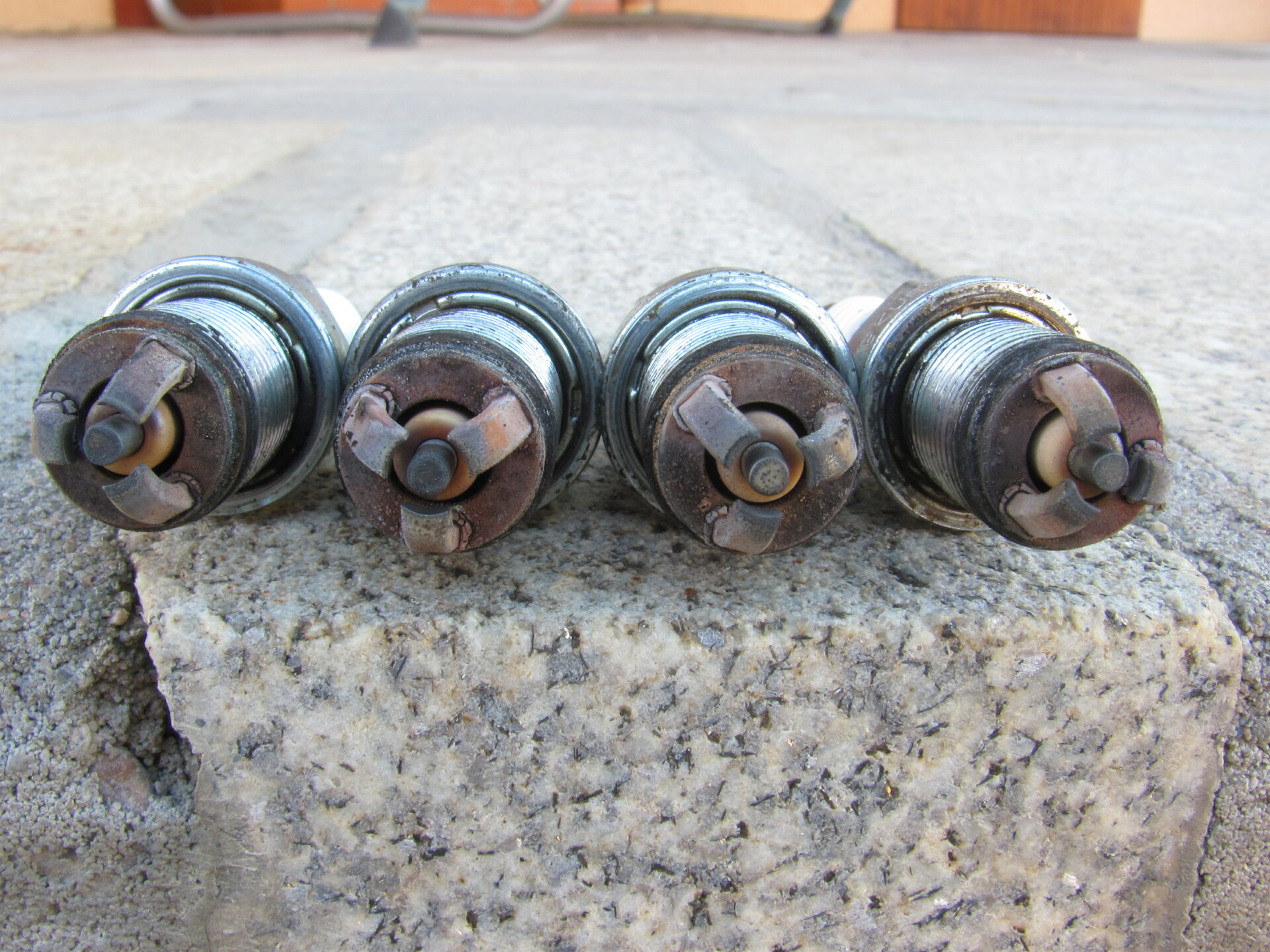 Červen 18, 20205 r ...nebyly to svíčky z aliexpresu nebo nějakého podobného původu? Oni ti číňani vyrobí ledacos, ale do kvality originálu to má většinou hodně daleko. Jinak u mě vypadaly svíčky po 30 kkm na LPG takto, viz obrázek níže.Dle barvy svíček bych řekl, že je směs příliš chudá a tímto směrem bych zaměřil další pozornost.